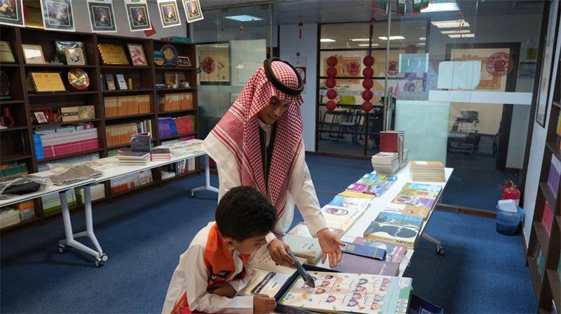 | 本文转自:人民网 人民网利雅得10月5日电(记者任皓宇)近日,吉达智慧宫中文教育学院举办文化交流活动,中沙师生欢聚一堂,共同庆祝中秋佳节到来。 活动中,来自沙特的学生们用流利的中文讲述中国与沙特国庆的历史与意义,表演了热情洋溢的沙特传统剑舞。在互动环节,大家积极参与“童年旧照猜一猜”和“国庆知识竞答”,现场笑声与掌声不断。本次活动还设置了“文化集市”,一册册中国图书成为中沙文化交流的“桥梁”,沙特的中文学习爱好者边浏览图书,边分享自己与中国的故事。 吉达智慧宫中文教育学院负责人表示,希望能通过活动让更多阿拉伯民众在节庆中感受中文之美,助力推动中沙人文交流合作。  当地中文爱好者学习中文教材。吉达智慧宫中文教育学院供图